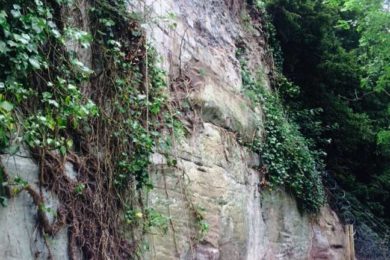 The cliff face was in peril – from a plant nemesis that threatened to blow the stone blocks out and cause major damage to this area of historic interest. The cliff face itself was covered in vegetation, and all this woody growth meant that roots were steadily intruding into the rocky fissures, creating and expanding it’s cracks and fractures. A consequence of this was a steady stream of rubble and loose rock falling onto the pathway below – dangerous for the visiting public and any would-be ghost hunters.