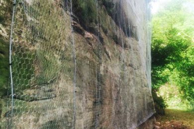 Our first concern was addressing the falling debris from the cliff, since it posed considerable danger for the public on the pathway below. The team set about clearing the plant matter that had steadily been intruding into the rock face, and when this devegetation was complete we set about the task of removing the hazardous rock via defrassing (removing the loose and laminated surface until only stable cliff face remained). In order to ensure optimum safety, and less chaos to the proceedings, we created a wire netting curtain that hung from top to bottom of the cliff face. By abseiling down the 40ft cliff, our rope access technician could fix the netting across the sheer cliff face, so that any falling debris and rock would be guided to the base and prevent injury, as well as further damage.