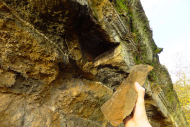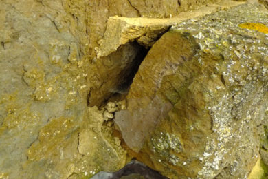 Iron, by nature, rusts and expands when in contact with oxygen and water. Since the whole church is constructed from ironstone, the fine iron particles are rusting and expanding, forming ‘iron veins’ – long, thin lines in the stone – where a weak point then forms due to it’s expansive force. Eventually that section of the stone breaks off with wind, water and ice weathering.
