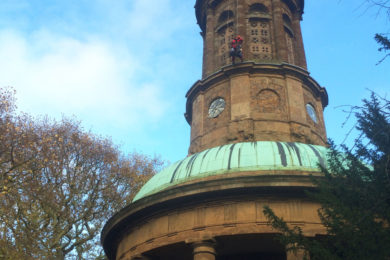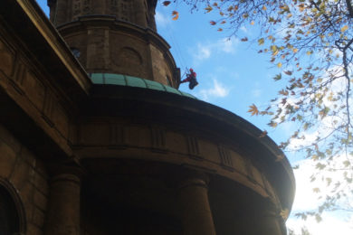 The WallWalkers team needed to install bolts to allow access across the entire church building, including it’s main hall, tower, spire and domed entrance. We looked through high-powered scopes from the ground to see any specific areas of interest needing immediate work and future repairs.