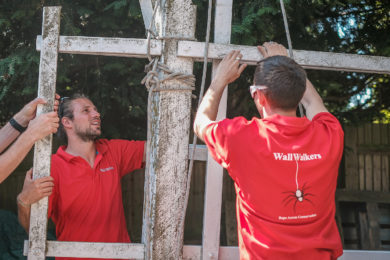 Within the first abseil drop, the WallWalkers team found the true nature of this windmill’s condition to be far worse than expected. All soft wood sweeps had completely rotted though at various points, particularly where the bracing sections joined the main stocks to act as stabilisers for the extending sails.